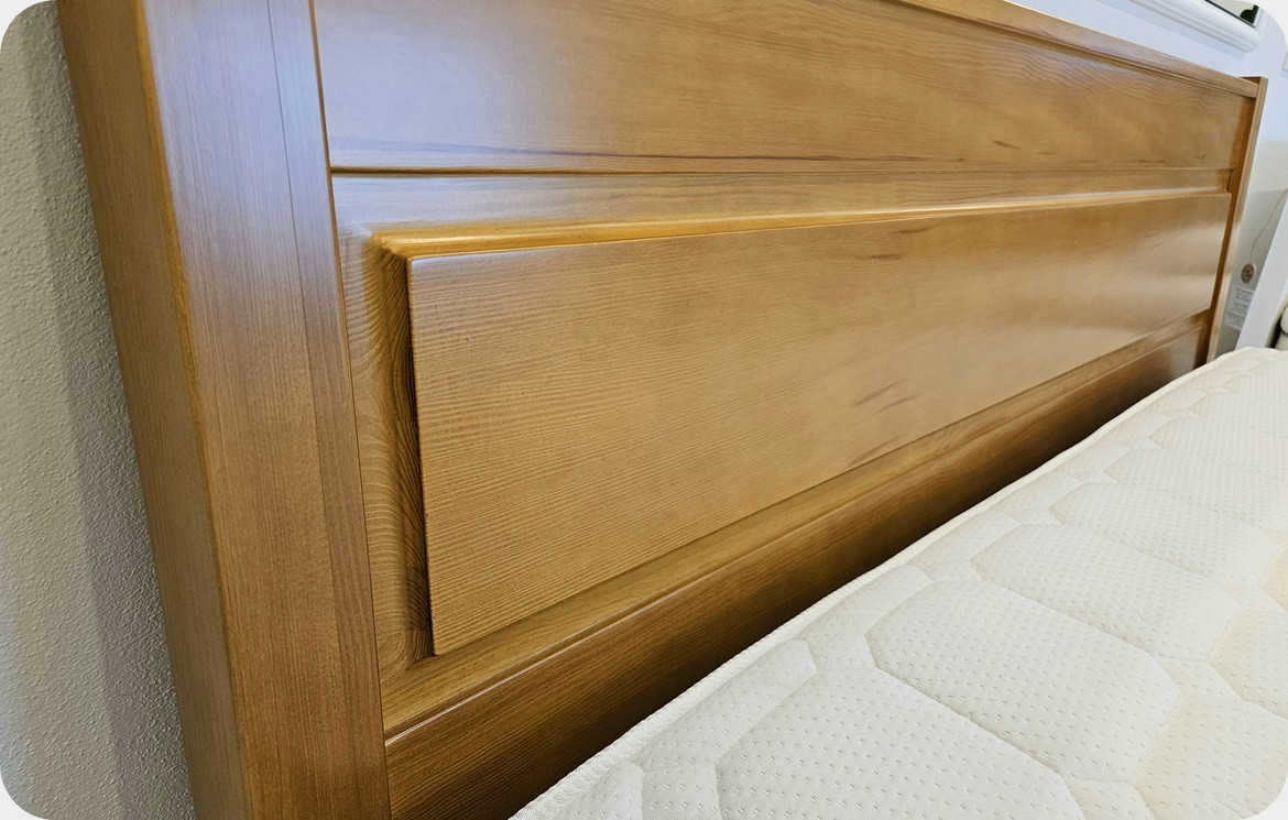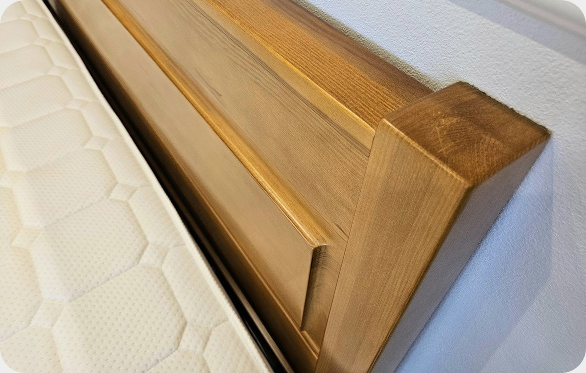 Łóżko wykonywane jest ręcznie przez rzemieślników stolarstwa, a materiał, który posłużył do produkcji to drewno klejone warstwowo-materiał naturalny, a tym samym szlachetny charakteryzujący się unikatowością struktury, nadający niepowtarzalności.