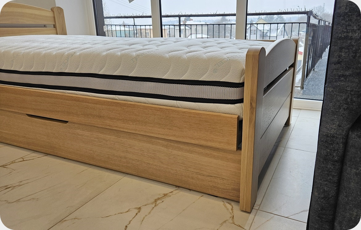 ŁÓŻKO DĘBOWE Z POJEMNIKIEM POSEJDON MAT...