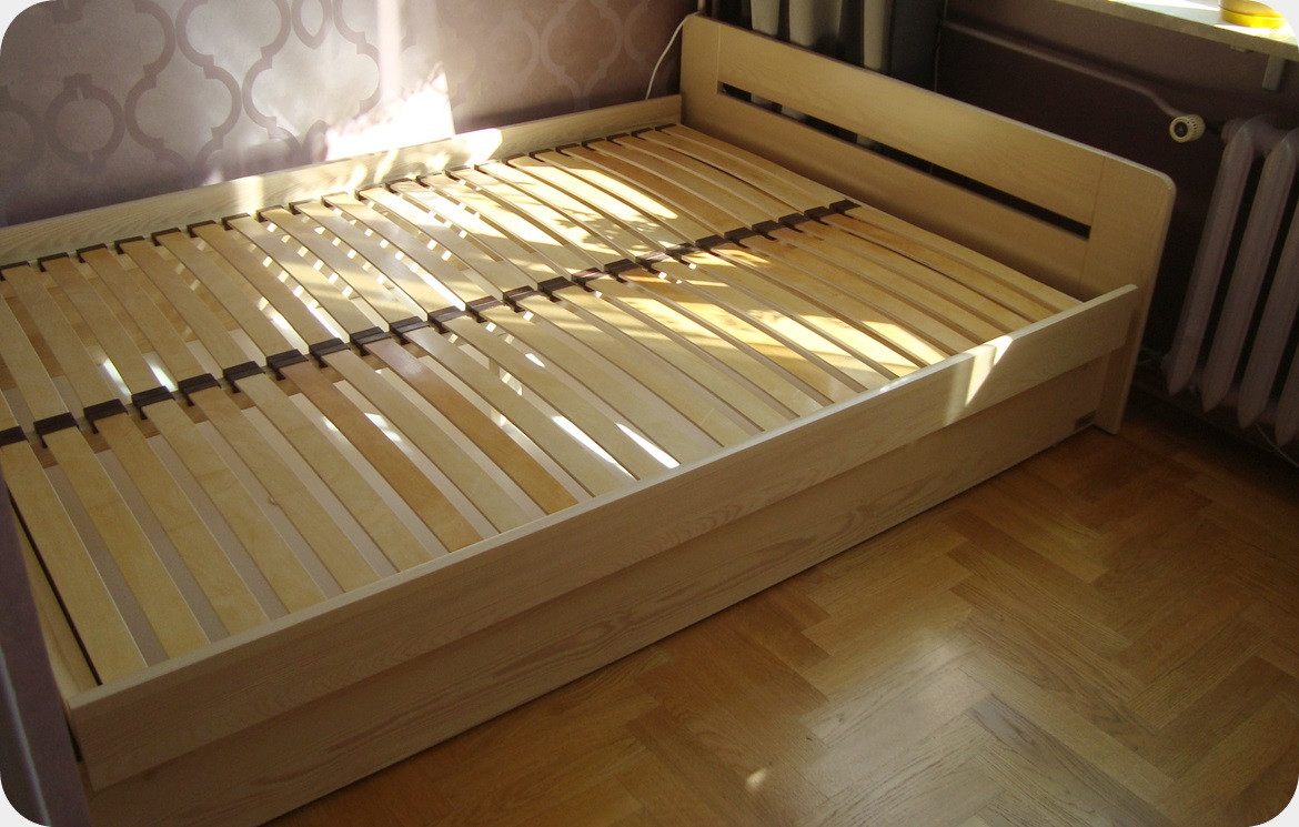 Łóżko posiada stelaż na drewnianej ramie z gęsto osadzonymi elastycznymi listwami, które dopasowują się do materaca zwiększając jego żywotność jak również przyczyniają się do lepszej ergonomii snu. Duża ilość listew sprawia, że stelaż jest odpowiedni dla każdego rodzaju materaca. Od wymiaru 120x200 stelaż jest dzielony. Łóżka od wymiaru 140x200 posiadają nogę w centralnej części.