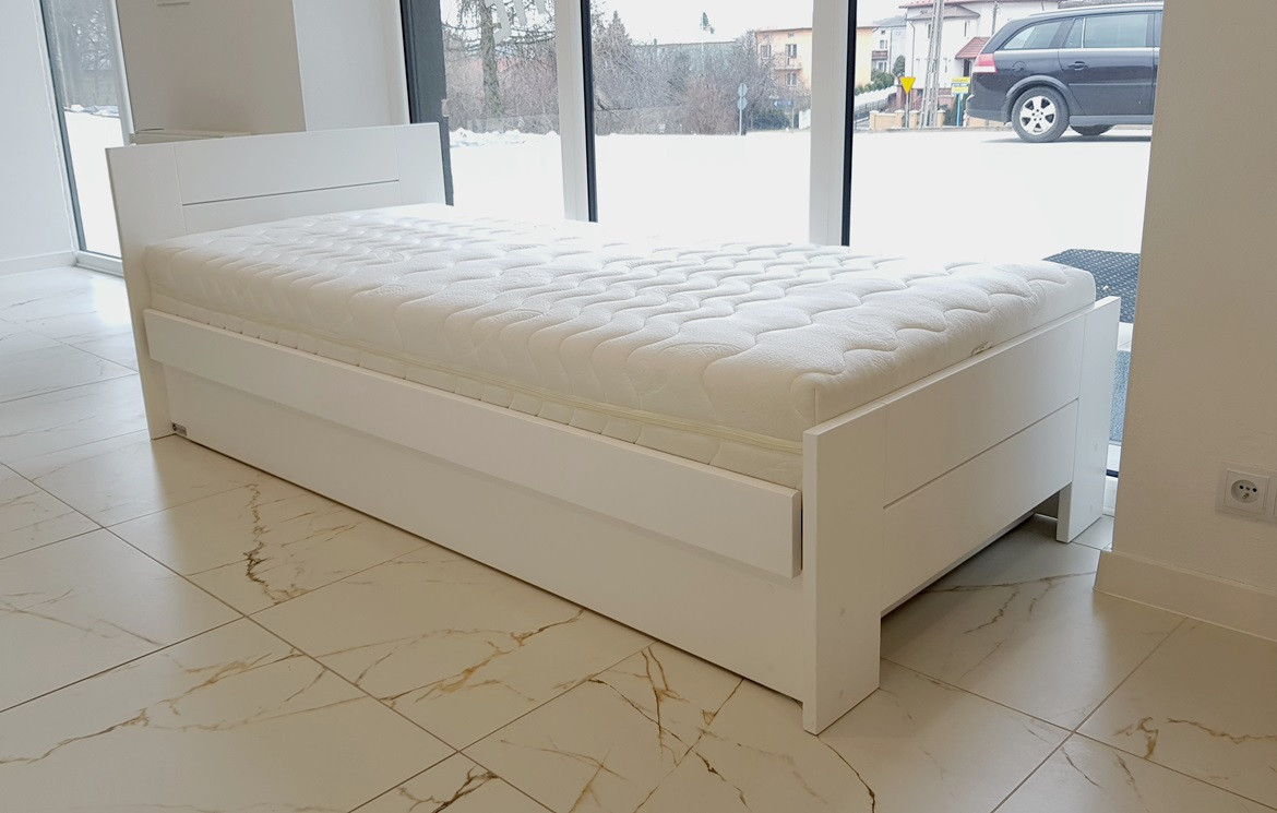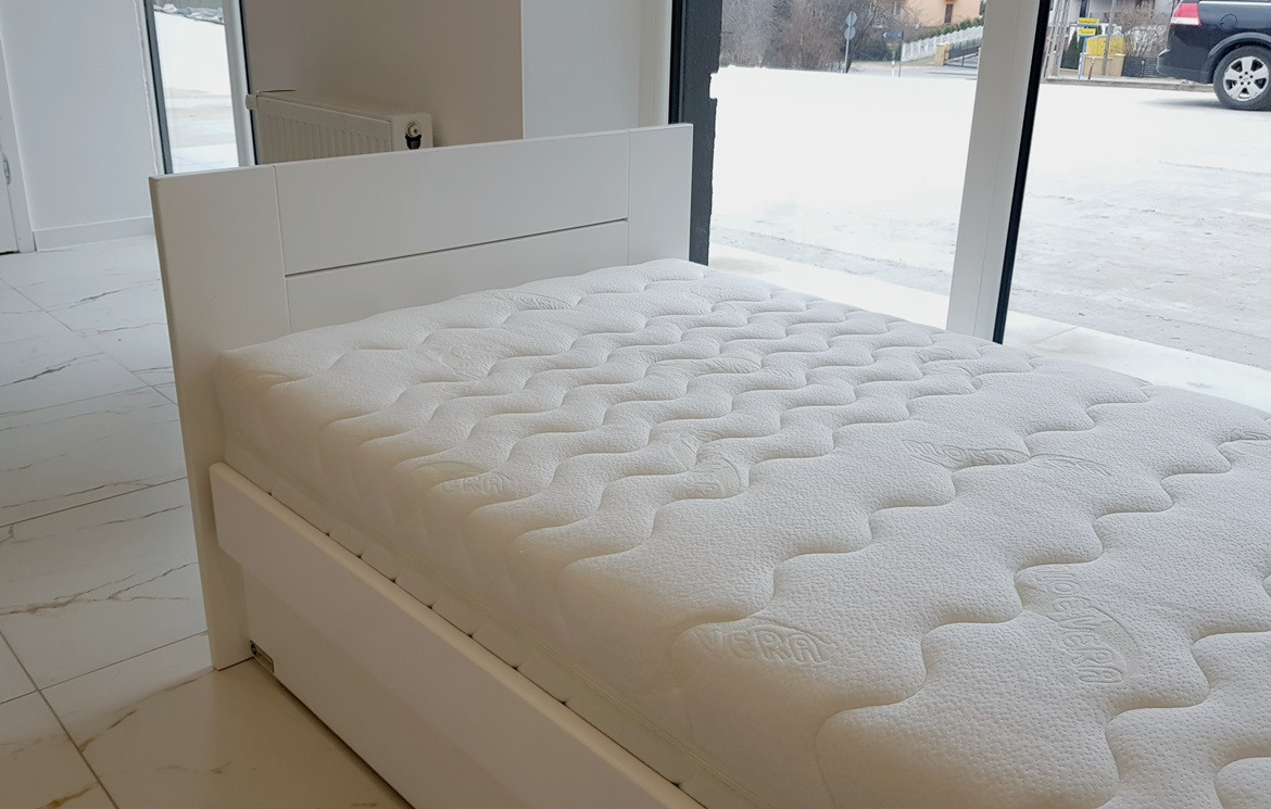 Łóżko do obejrzenia na ekspozycji w salonie w Starachowicach.