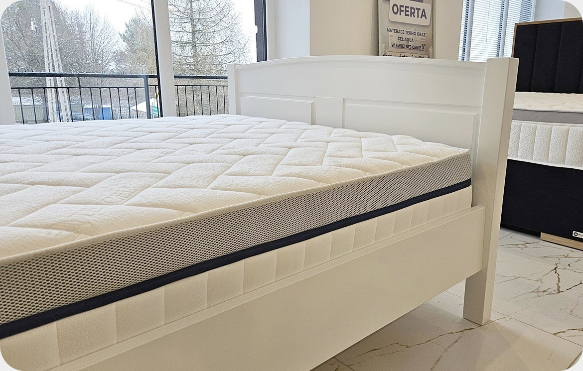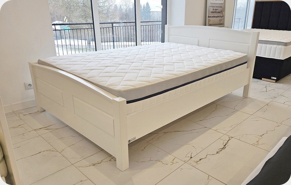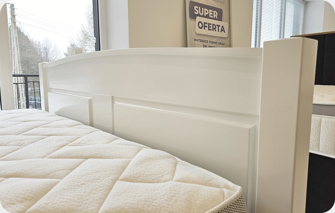 Łóżko do obejrzenia na ekspozycji w salonie w Starachowicach.