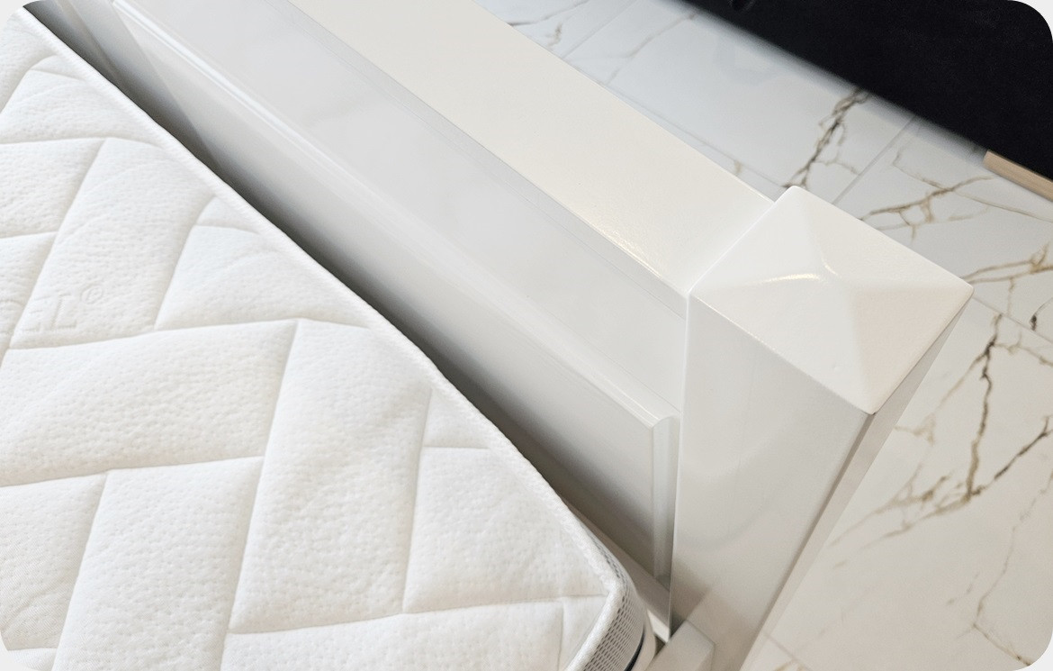 Łóżko posiada stelaż na drewnianej, sosnowej ramie z gęsto osadzonymi elastycznymi listwami z drewna brzozowego, które dopasowują się do materaca zwiększając jego żywotność jak również przyczyniają się do lepszej ergonomii snu. Duża ilość listew sprawia, że stelaż jest odpowiedni dla każdego rodzaju materaca.