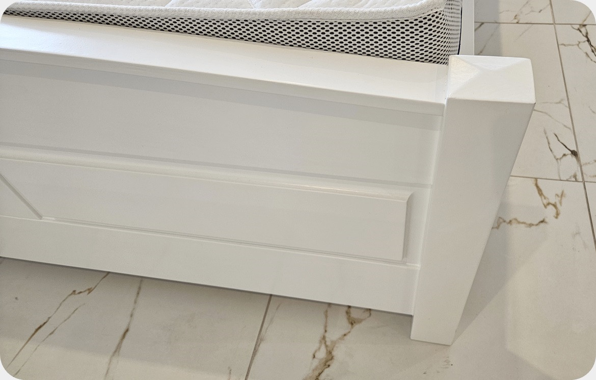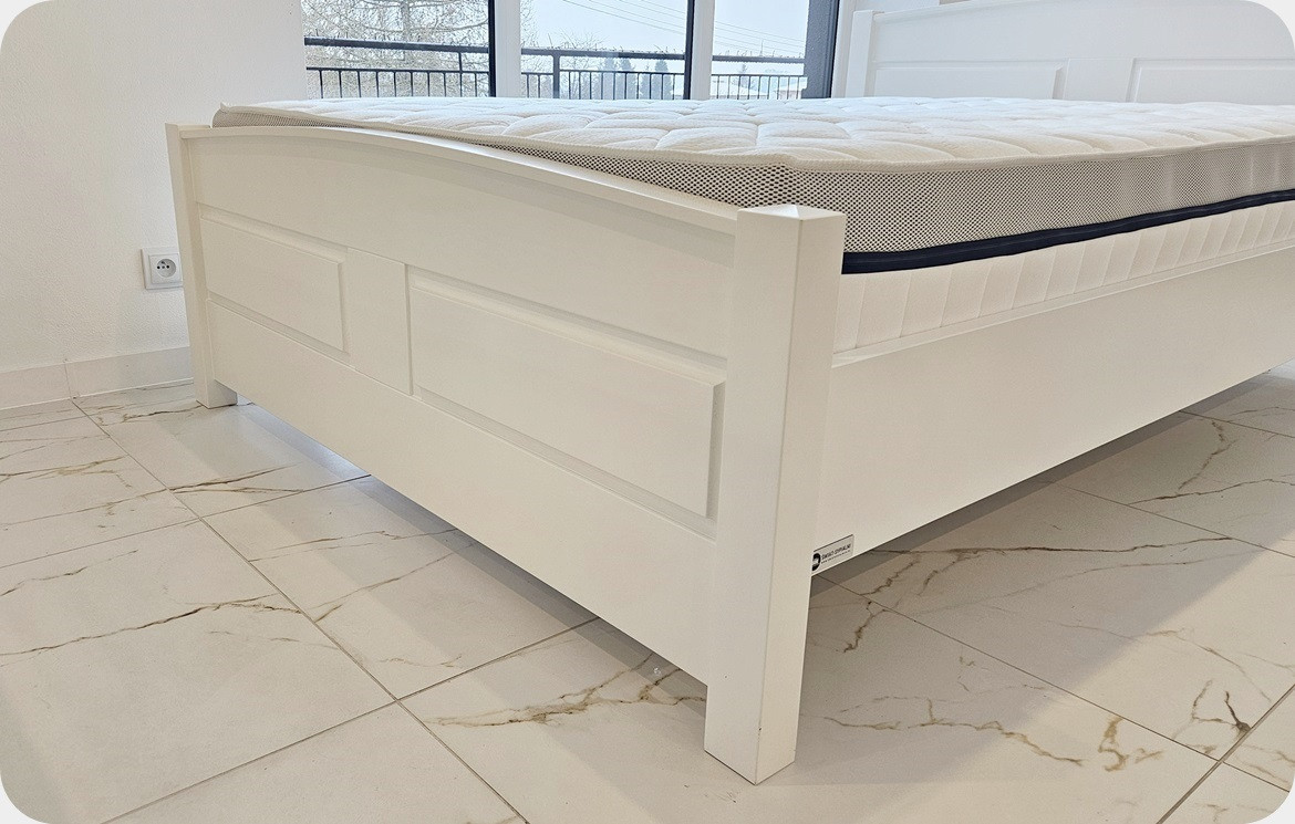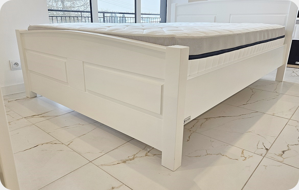 Łóżko wykonane ręcznie przez rzemieślników stolarstwa, a materiał, który posłużył do produkcji to drewno sosnowe klejone warstwowo-materiał naturalny, a tym samym szlachetny charakteryzujący się unikatowością struktury, nadający niepowtarzalności.