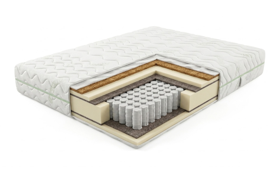 Dream Kokos to materac zbudowany ze sprężyny kieszeniowej obłożonej obustronnie przekładką tapicerską, pianką poliuretanową o gęstości 35kg/m³, lateksowanymi włóknami kokosu oraz przekładką klimatyzującą. Sprężyny zwarte w materacu umieszczone są w materiałowych kieszeniach dzięki czemu ich praca jest niezależna od siebie, a ponadto posiadają także strefy twardości, dlatego idealnie dopasowują się do anatomicznej budowy ciała śpiącego. Włókna kokosu są lateksowane dzięki czemu zwiększona jest ich żywotność - nie dochodzi do ich rozwarstwienia. Materac posiada dodatkowy pokrowiec wewnętrzny, zapewniający lepszą ochronę wkładu.